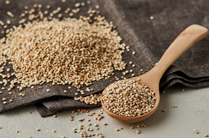 9가지 필수 아미노산을 모두 함유한 퀴노아는 불용성 섬유질 덕분에 소화를 개선하고, 포만감을 높여 과식을 억제하는 효과가 있습니다.