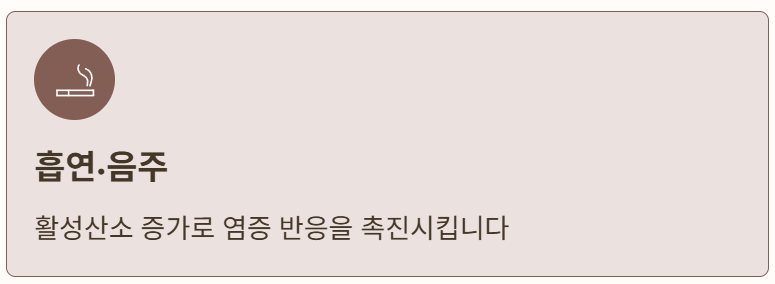 - 🚬 흡연·음주 : 활성산소 증가로 염증 반응 촉진