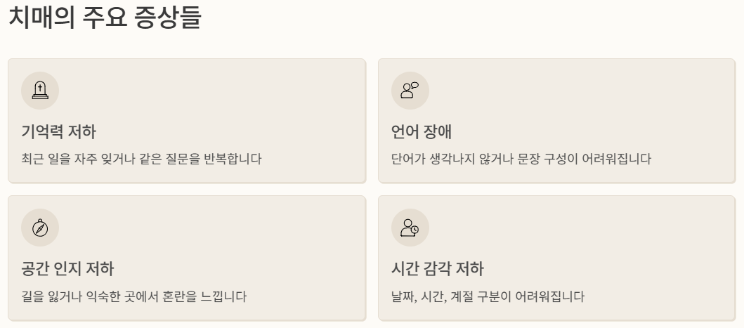 - 🧩 기억력 저하 : 최근 일을 자주 잊음